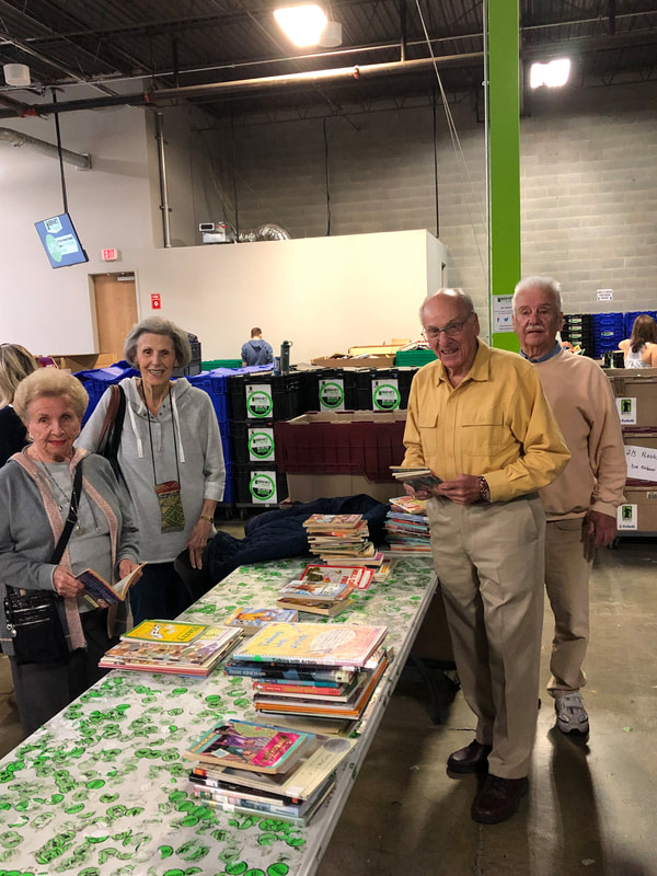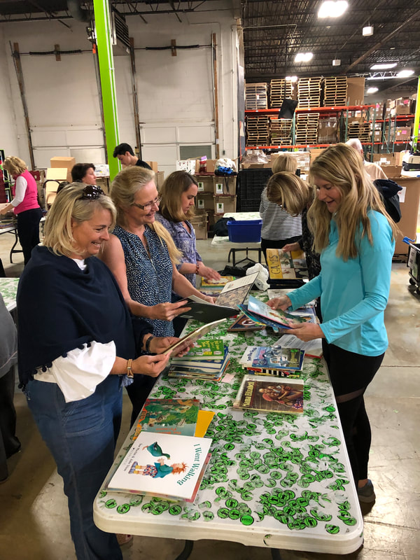 During the holiday season, our December drive assisted the Fill a Heart for Kids with a Hot Cocoa packing session as part of our December coffee event. The Karen Miller fund supported the costs of the cocoa packages and our members stuffed hundreds of packages supporting local students in foster care and those experiencing homelessness. Our first Karen Leese Miller service event! Bernie's Book Bank distributes quality children's books to significantly increase book ownership amongst at risk infants, toddlers and school age children throughout Chicagoland. They serve around 360,000 children every year. Neighbors collected gently used and new children's books at the last luncheon and donated them along with a check to Bernie's Book Bank. We helped sort the amazing collection of donated books and had fun celebrating April 24th, Karen's birthday, in her honor! |